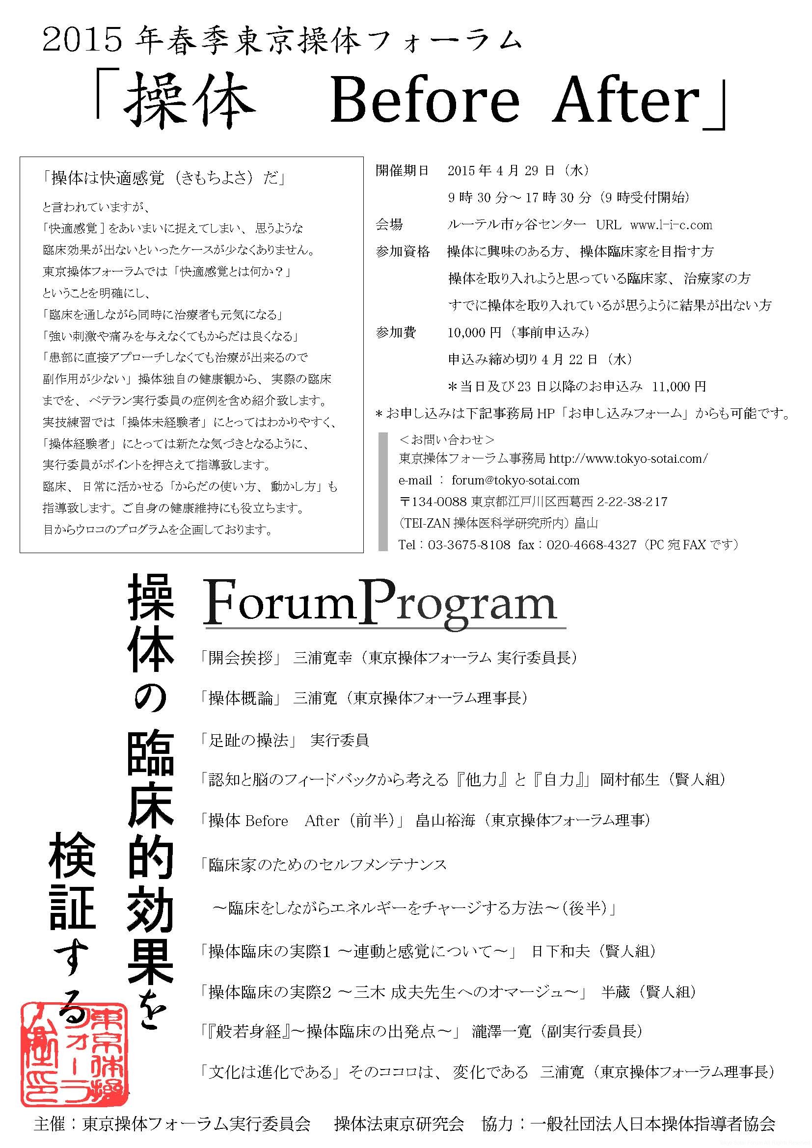2015年春季東京操体フォーラム続報です。